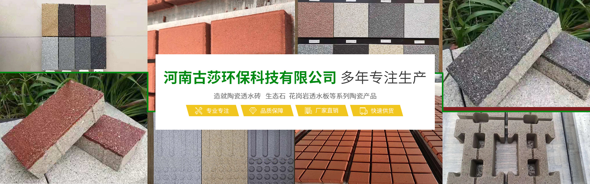 河南古莎環(huán)保科技有限公司總坐落于交通樞紐城市鄭州,是一家具備研發(fā)、生產(chǎn)、銷售能力為一體的綜合性現(xiàn)代化陶瓷企業(yè)。本公司專業(yè)生產(chǎn)經(jīng)營生態(tài)陶瓷透水磚、生態(tài)鋪石、PC仿石材透水磚、PC仿石材景墻磚、普通透水磚、燒結(jié)磚等系列產(chǎn)品,完善的研發(fā)團(tuán)隊,完善的生產(chǎn)流水線設(shè)備,打造完善的陶瓷企業(yè)。古莎環(huán)保科技現(xiàn)代化陶瓷企業(yè)是美化城市,改善生活環(huán)境質(zhì)量的生態(tài)環(huán)保產(chǎn)品,可廣泛應(yīng)用于公共建筑廣場、城市道路、公園、藝術(shù)景觀、廊道、房地產(chǎn)、別墅住宅小區(qū)、地鐵口、車站、高速公路服務(wù)區(qū)等。古莎環(huán)保科技在原有陶瓷企業(yè)基礎(chǔ)上,另拓展園林綠化、市政施工、瀝青包工包料施工、公路維修等業(yè)務(wù)板塊,專業(yè)培訓(xùn)了一些園林綠化、市政施工技術(shù)人員,并有多年的施工養(yǎng)護(hù)經(jīng)驗以及建筑工程經(jīng)驗。保證市政工程施工質(zhì)量以及園林綠化后期養(yǎng)護(hù)規(guī)范化、專業(yè)化。古莎環(huán)保科技所遵循的企業(yè)與品牌發(fā)展思路,是奠定在品質(zhì)與產(chǎn)品應(yīng)用之上。環(huán)保理念由我們共同倡導(dǎo),理性思考,以推進(jìn)步,感性溝通,以共建優(yōu)越。古莎環(huán)保科技與大家真誠合作,攜手共進(jìn),為助力海綿城市建設(shè),建筑高品質(zhì)的綠色城市生活貢獻(xiàn)一份力量!